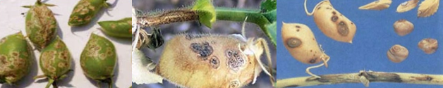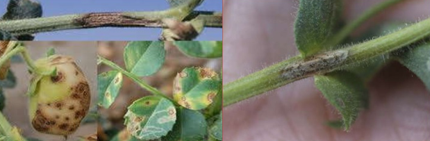 میزبانهای این بیماری علاوه بر نخود، عدس، کلزا، لوبیا، یونجه، شبدر، خردل و گل کلم هستند.