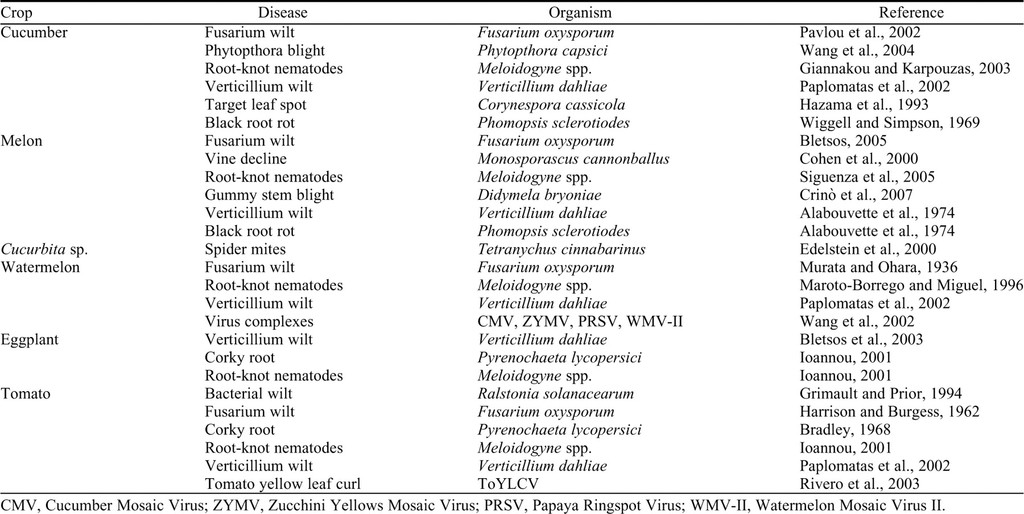 تکنیک پیوند سبزیجات نه تنها در مدیریت بیماریهای خاکزاد بلکه در کاهش خسارت بیماری های ویروسی، بیماریهای ناشی از نماتدها، آفات مختلف نظیر کنههای گیاهی، بیماریهای فیزیولوژیک ناشی از عوامل غیرزنده نظیر شوری، خشکی، pH نامناسب، دمای نامناسب، فلزات سنگین، نیز به عنوان یکی از ابزارهای مهم کنترل تلفیقی آفات و بیماریهای گیاهی مورد استفاده قرار میگیرد.